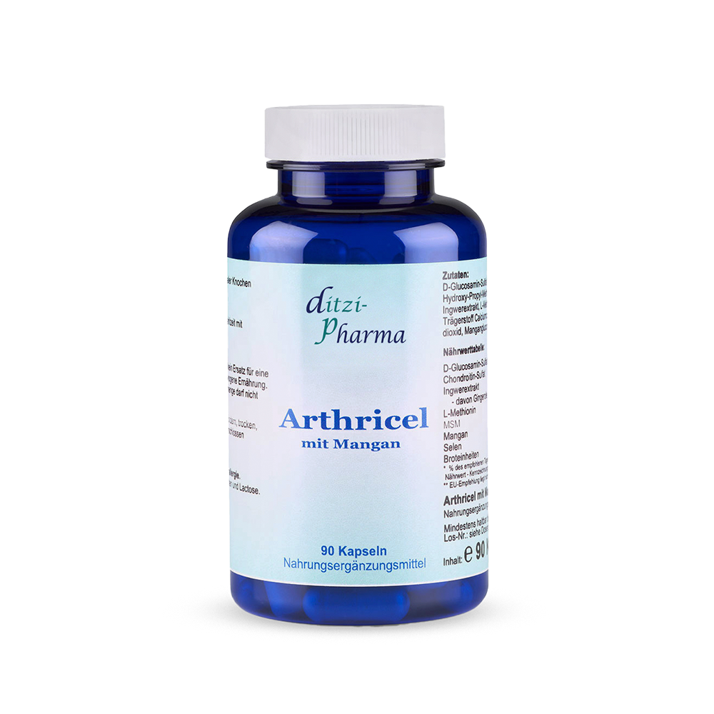 Το Arthricel είναι ένα συμπλήρωμα διατροφής που περιέχει Θειϊκή Γλυκοζαμίνη, Θειϊκή Χονδροϊτίνη, Μεθυλοσουλφονυλομεθάνιο, L-Μεθειονίνη, εκχύλισμα Τζίντζερ, Σελήνιο και Μαγγάνιο.