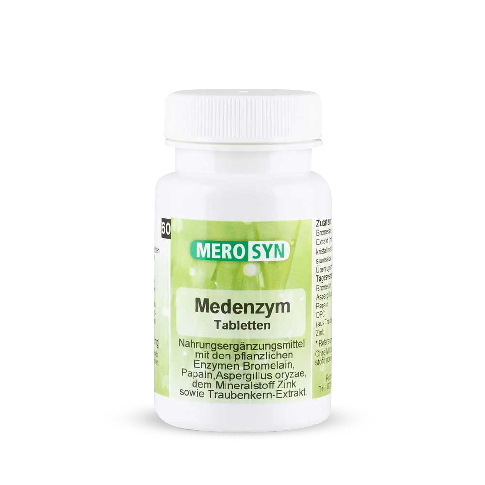 Το Medenzym είναι ένα προσεκτικά σχεδιασμένο και ιδιαίτερα αποτελεσματικό σκεύασμα με καθαρά φυτική σύνθεση από ΈνζυμαOPC και Ψευδάργυρο. Μέσω ειδικής παρασκευής της ταμπλέτας, έχει γίνει δυνατή η βραδεία διάλυσή της στο στομάχι, ώστε τα συστατικά του Medenzym να φτάνουν στον κύριο προορισμό της δράσης τους, το λεπτό έντερο.