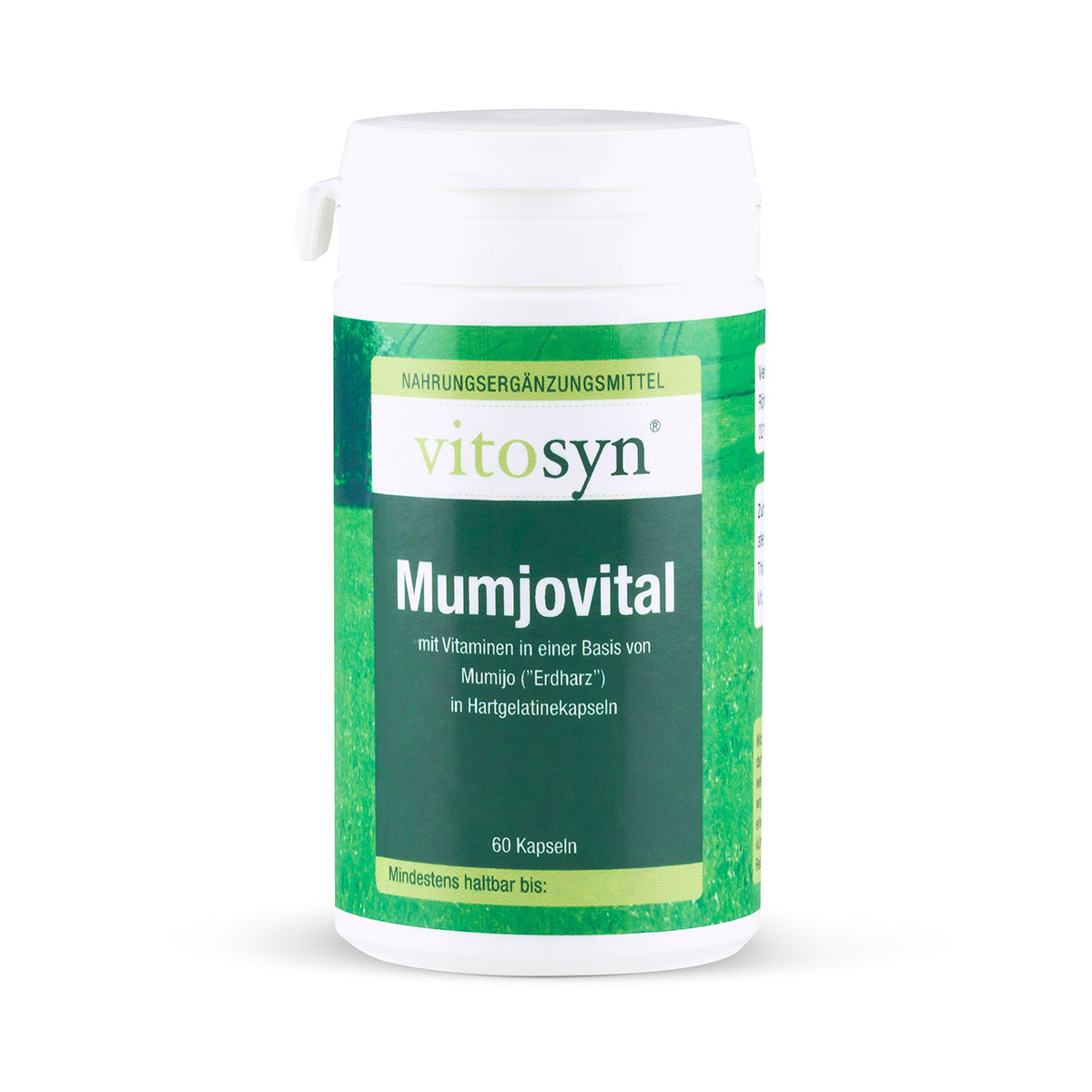 Το Mumjovital είναι ένα συμπλήρωμα για οστά και ανάρρωση που περιέχει Mumjo – ένα φυσικό ορυκτό προϊόν από την οροσειρά Altai της Κεντρικής Ασίας – σε συνδυασμό με βιταμίνες C, B1, B2, B6, B12 και Φολικό οξύ.